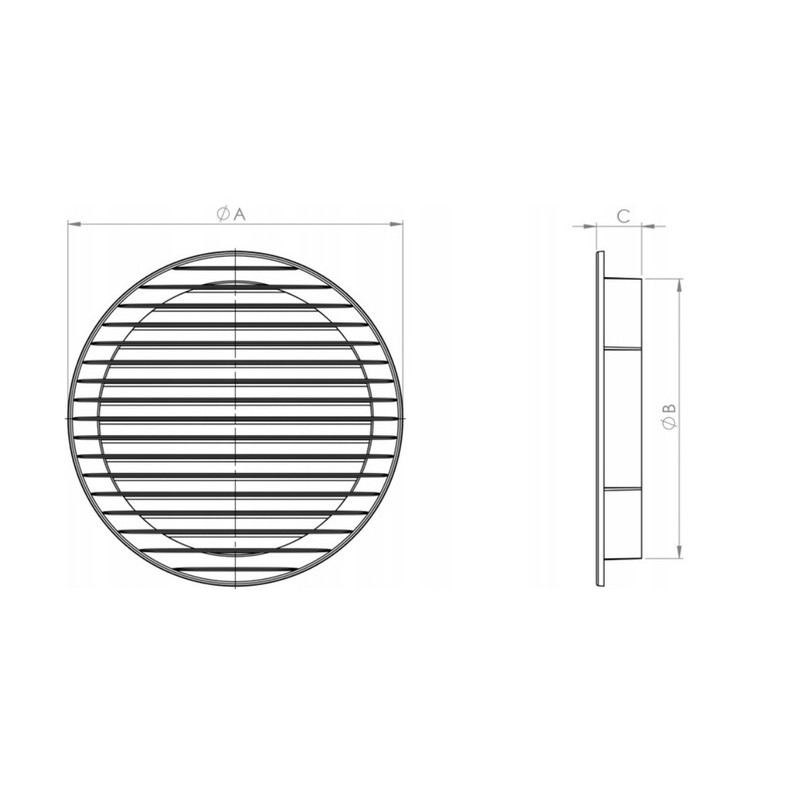 Kratka wentylacyjna nadtynkowa z otworem wyjściowym okrągłym o średnicy 125 mm. Stosowana jako kratka wentylacyjna nawiewno-wywiewna do pomieszczeń wewnątrz i na zewnątrz budynku.