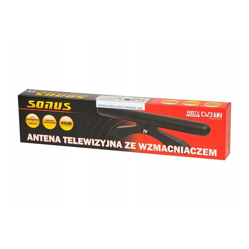 Antena wewnętrzna pokojowa ze wzmacniaczem Antena TV SONUS+USB