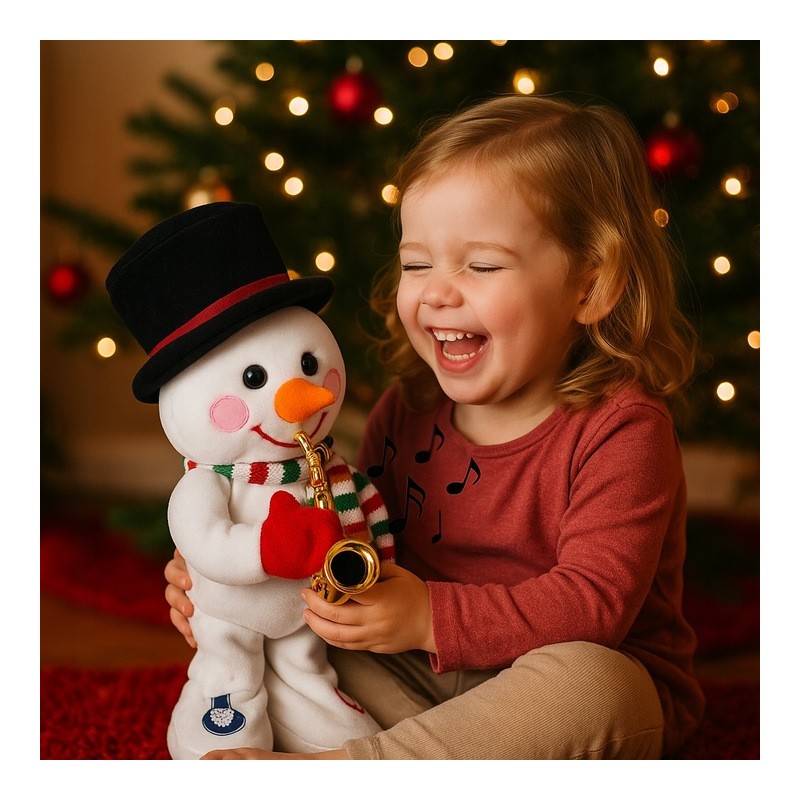 Wprowadź do swojego domu prawdziwą magię świąt z uroczym Bałwanem z saksofonem! To nie tylko ozdoba, ale też radosna zabawka muzyczna, która rozbawi dzieci i zachwyci dorosłych. Bałwan ubrany jest w kolorowy, bożonarodzeniowy strój, trzyma w łapkach złoty saksofon i potrafi tańczyć, grać i świecić – wnosząc do wnętrza prawdziwie świąteczną energię!