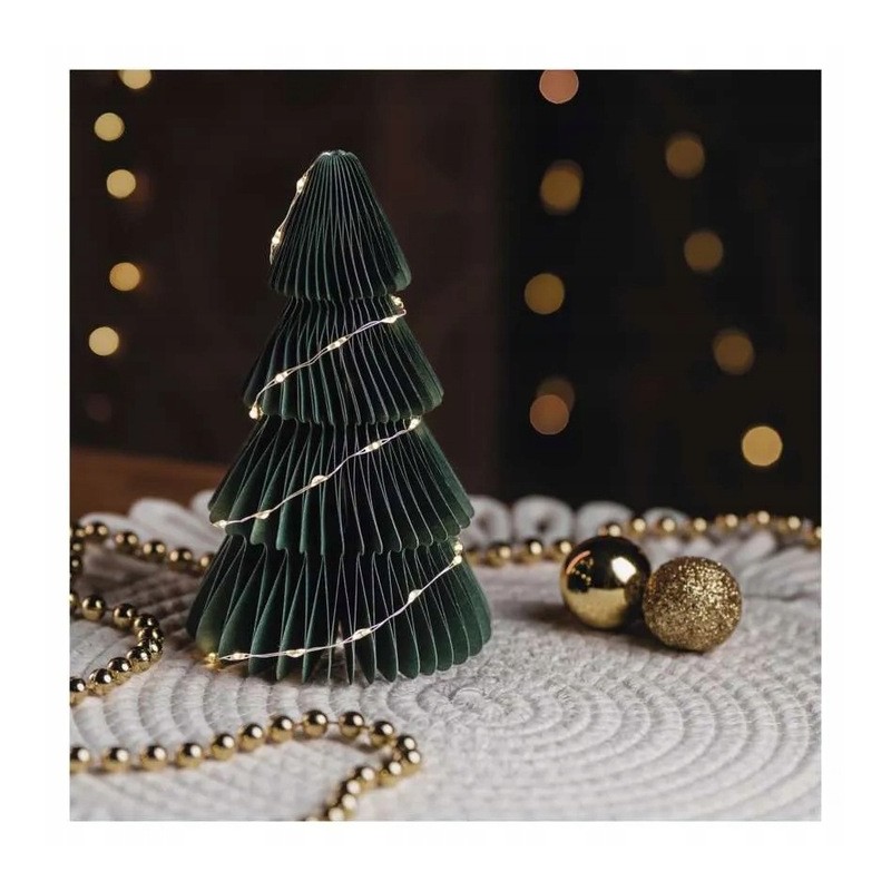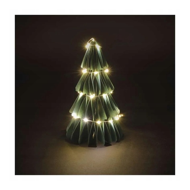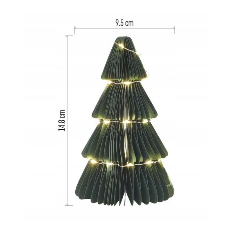 Dekoracja Świąteczna Choinka Papierowa 35 LED Ciepła Biel 30cm 2× AA timer