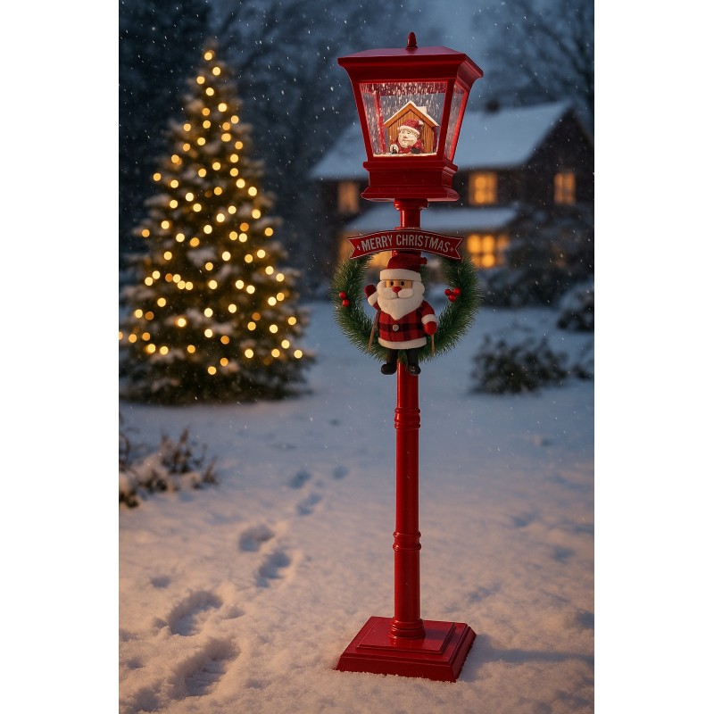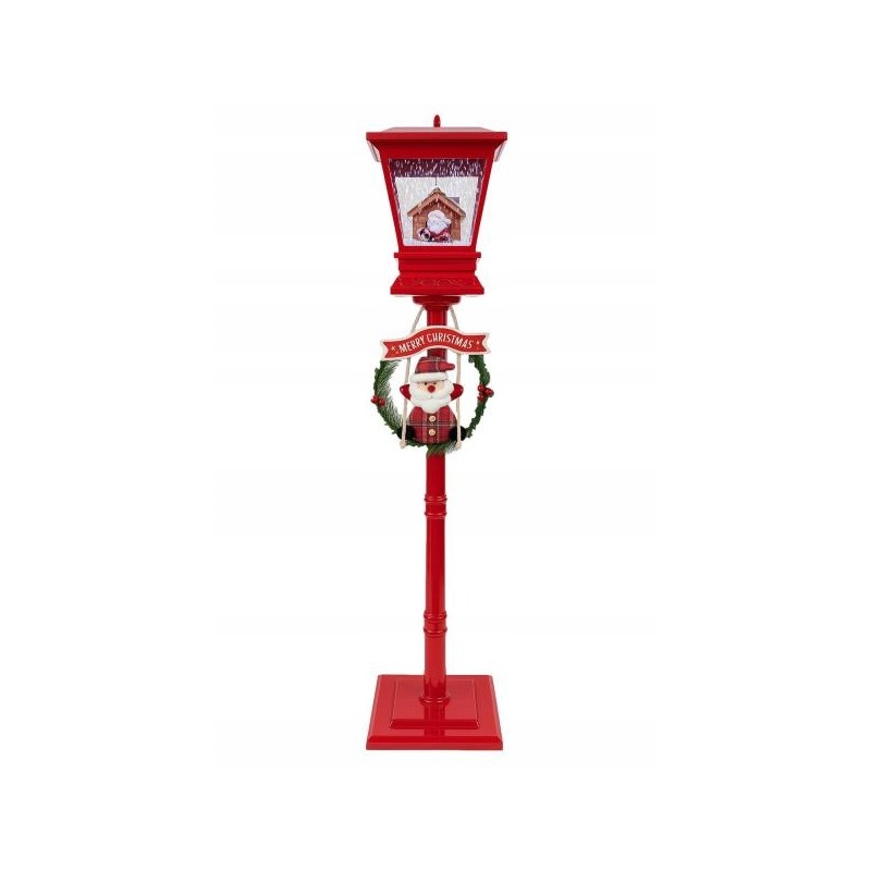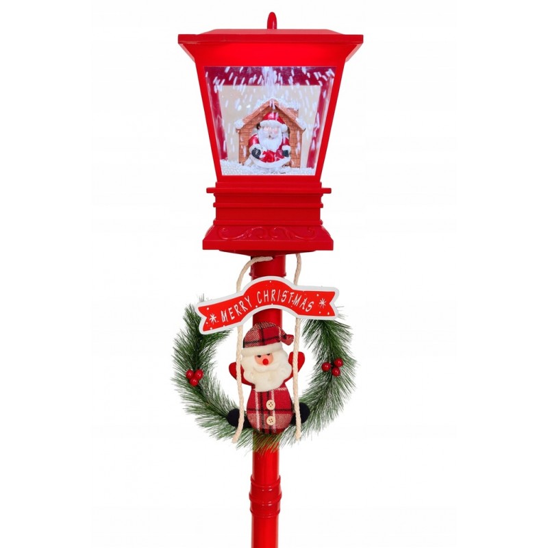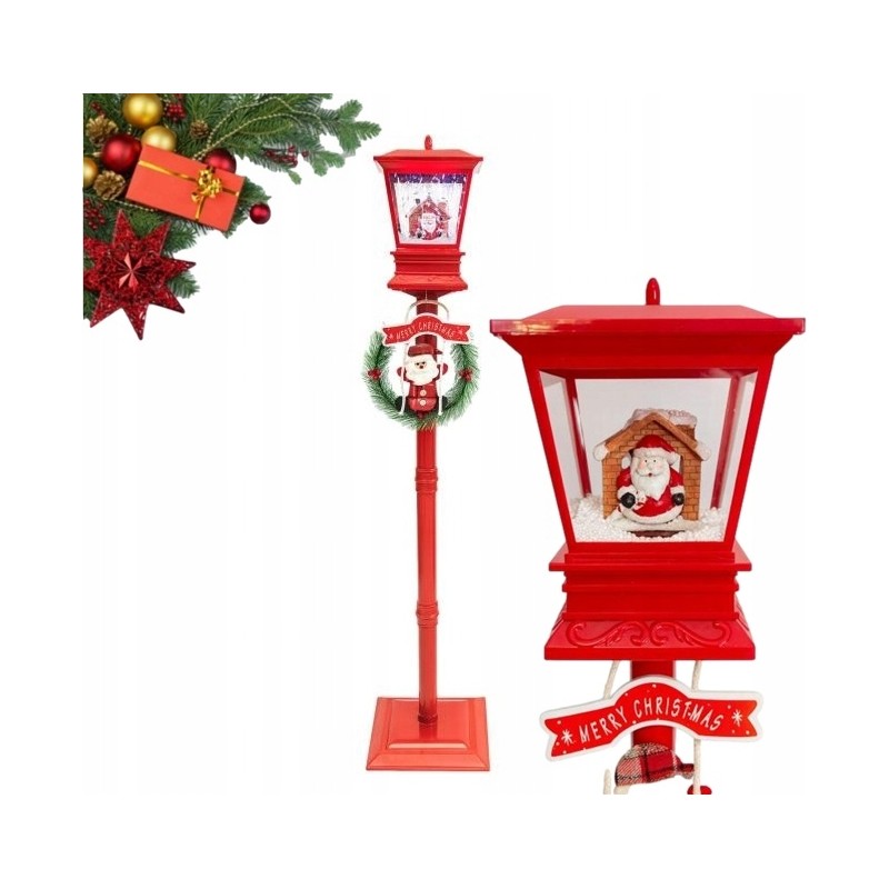 Latarnia Lampa Świąteczna Do Ogrodu z Pozytywką Mikołaj Domek Czerwona 1,5m