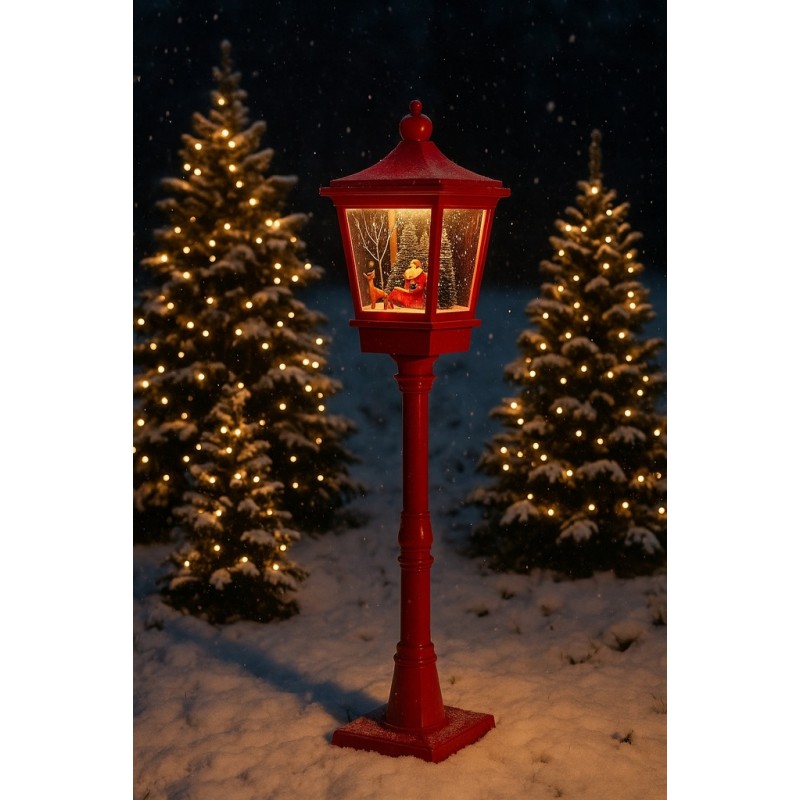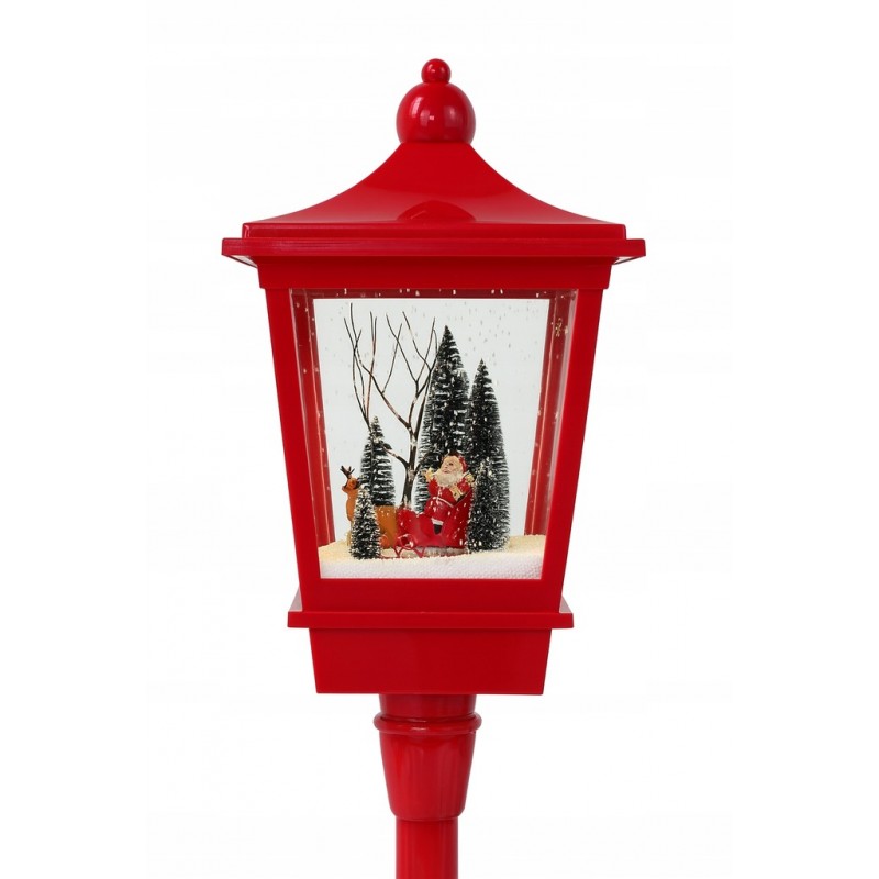 Latarnia Lampa Świąteczna Do Ogrodu z Pozytywką Mikołaj Sanie Czerwona