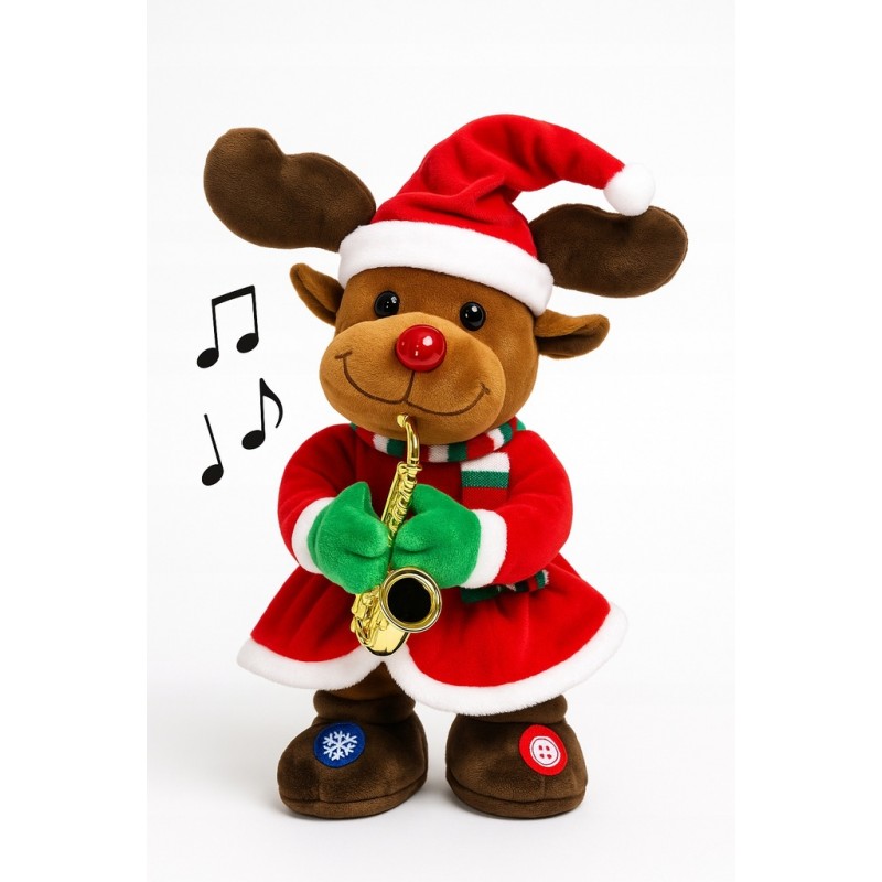 ✴️Świąteczny renifer z saksofonem – tańczący, grający i powtarzający głos! ✨