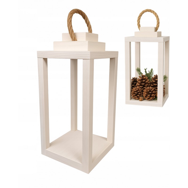 Lampion drewniany latarnia biały z uchwyt 30cm