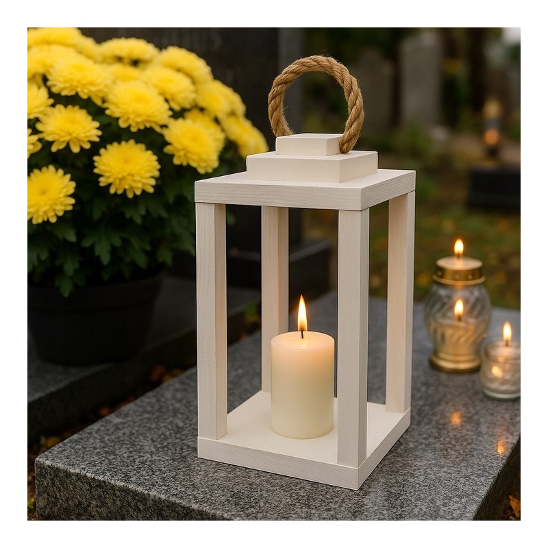 Lampion na Cmentarz Drewniany Naturalny Latarenka na Grób z podłogą 30 cm