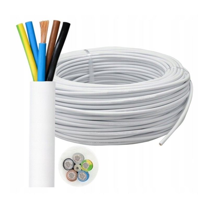 Przewód Kabel Linka OWY 5x1,5 H05VV-F 500V Biały 1 m