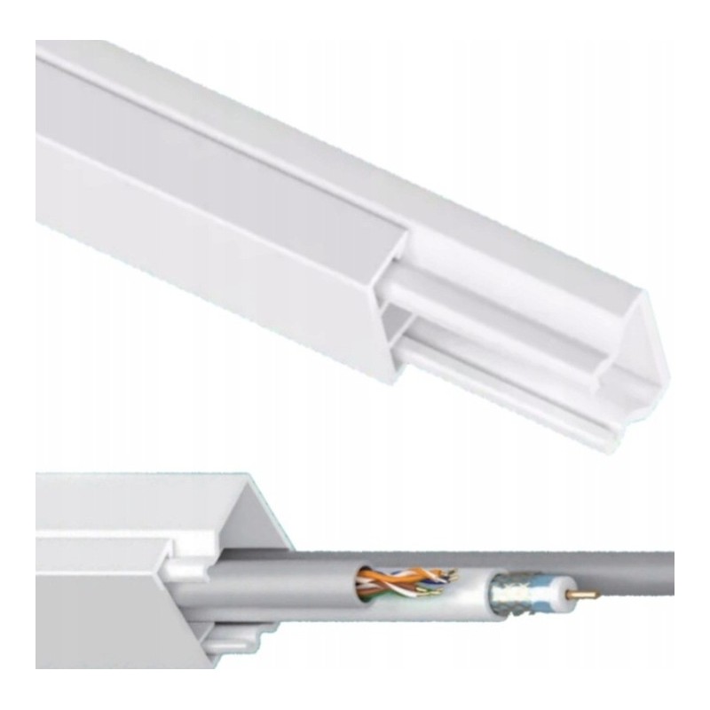 Kanał podtynkowy do prowadzenia i ochrony przewodów kablowych. Idealnie nadaje się do estetycznego zamaskowania kabli łączących telewizor z dekoderami, gniazdkami czy antenami oraz pozostałymi urządzeniami.