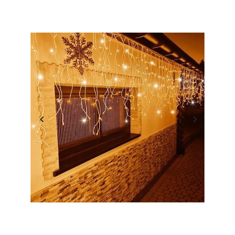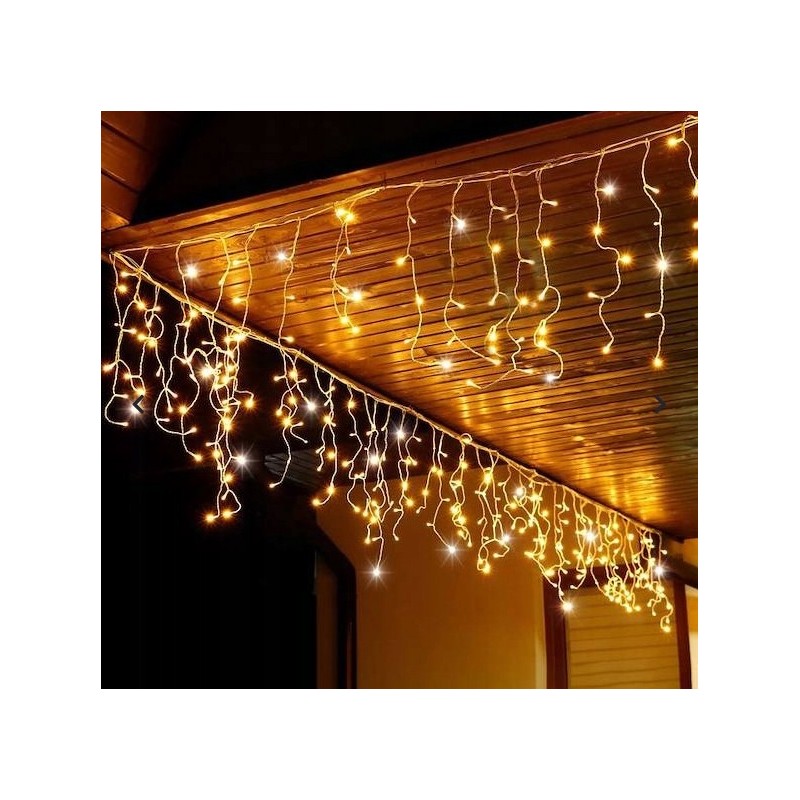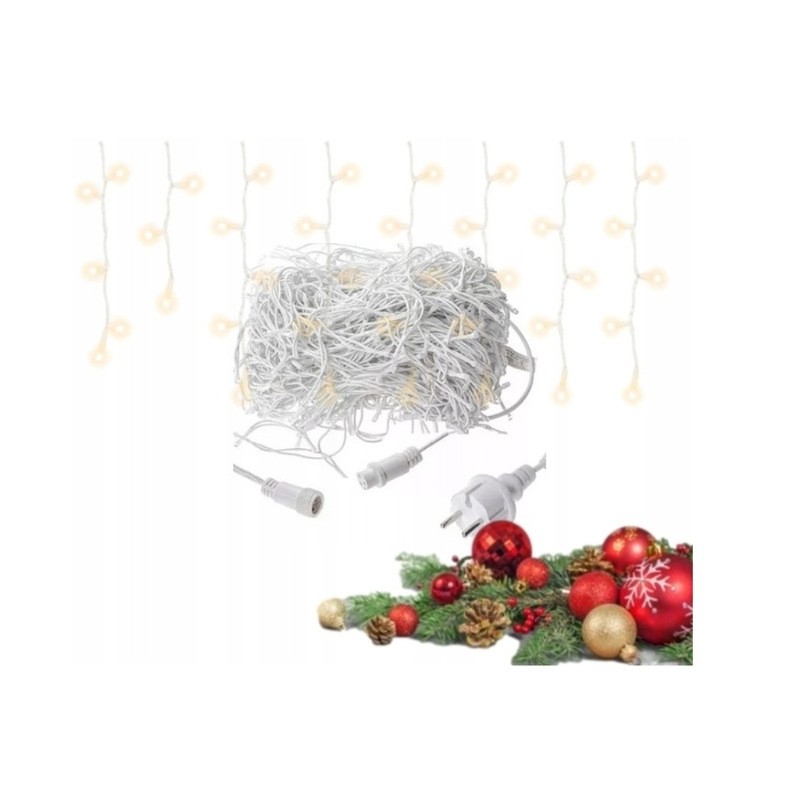 Lampki Choinkowe LED Kurtyna Świetlna Sople 300 LED Ciepły Biały Flesz