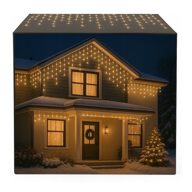 To profesjonalne oświetlenie dekoracyjne, idealne do ozdobienia elewacji, ogrodu, balkonów lub wnętrz. Ciepła barwa światła w połączeniu z delikatnym efektem błysku tworzy przytulną, magiczną atmosferę Świąt Bożego Narodzenia.
