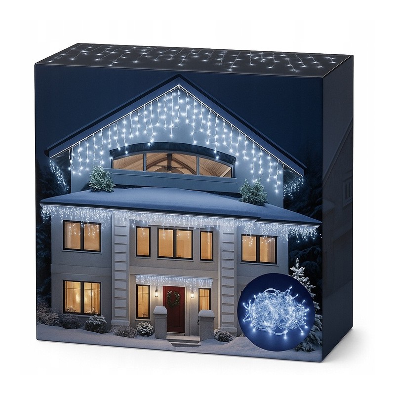 To profesjonalne oświetlenie dekoracyjne, które idealnie nadaje się do ozdobienia elewacji budynków, ogrodzeń, balkonów, tarasów czy wnętrz. Jasne, chłodne światło wprowadza elegancki i świąteczny klimat – idealny na zimowe wieczory.