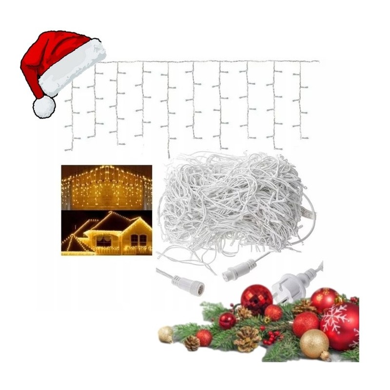 Lampki Choinkowe Sople Kurtyna Świetlna 300 LED Ciepłe Białe