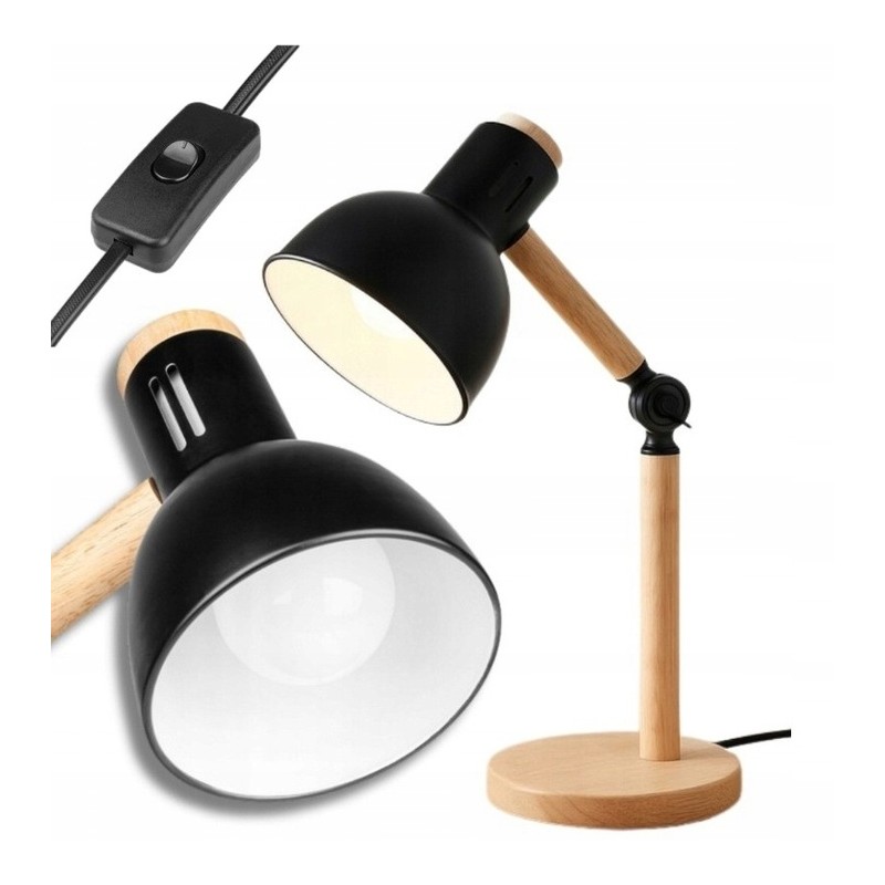 Lampka Biurkowa Kreślarska Lampka Nocna Szkolna Drewniana E27 60W