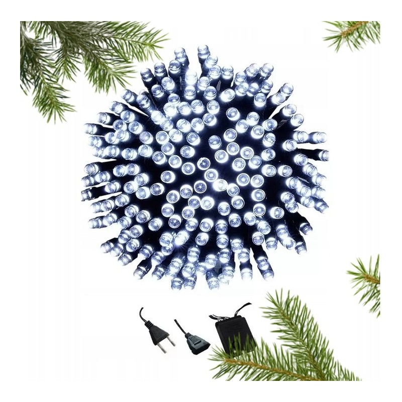 ❄️Lampki choinkowe 100 LED ZIMNY BIAŁY z programatorem i gniazdem – 8 funkcji świecenia