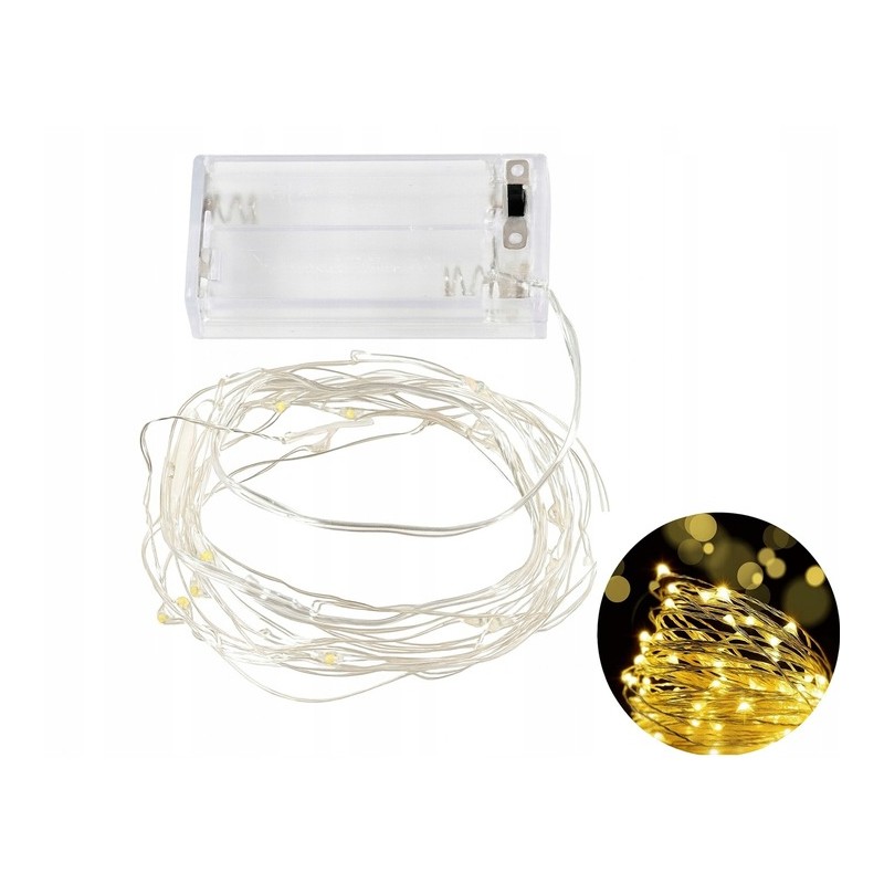 ✴️Lampki Drucik 50 LED – Ciepły Biały | Na Baterie 2xAA