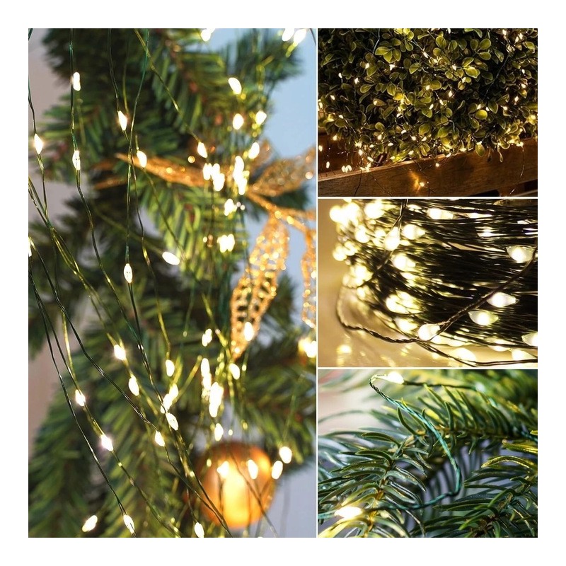 LAMPKI CHOINKOWE 100 LED CIEPŁY BIAŁY ZEW/WEW PROGRAMATOR DODATKOWE GNIAZDO