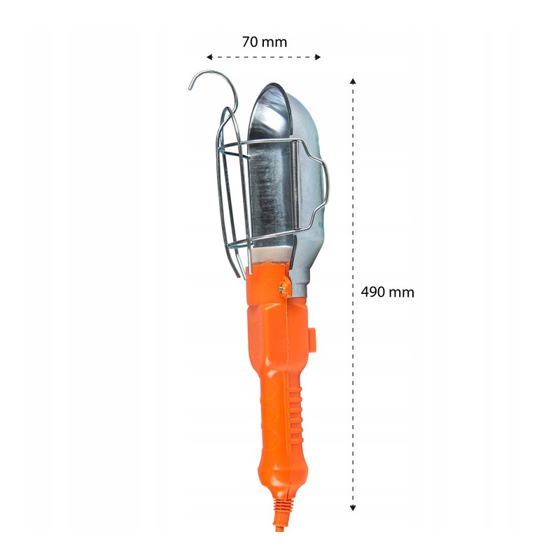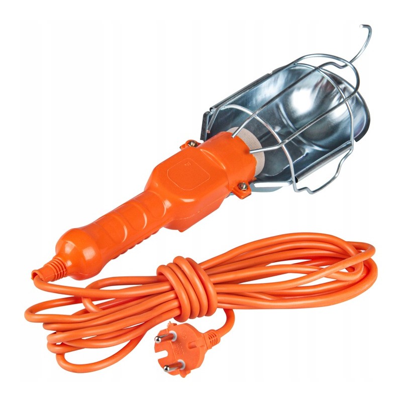 LAMPA WARSZTATOWA E27 230V Z PRZEWODEM I HAKIEM NA KABLU 5M LATARKA