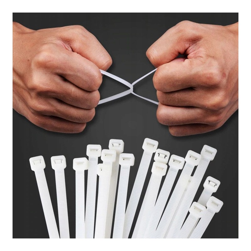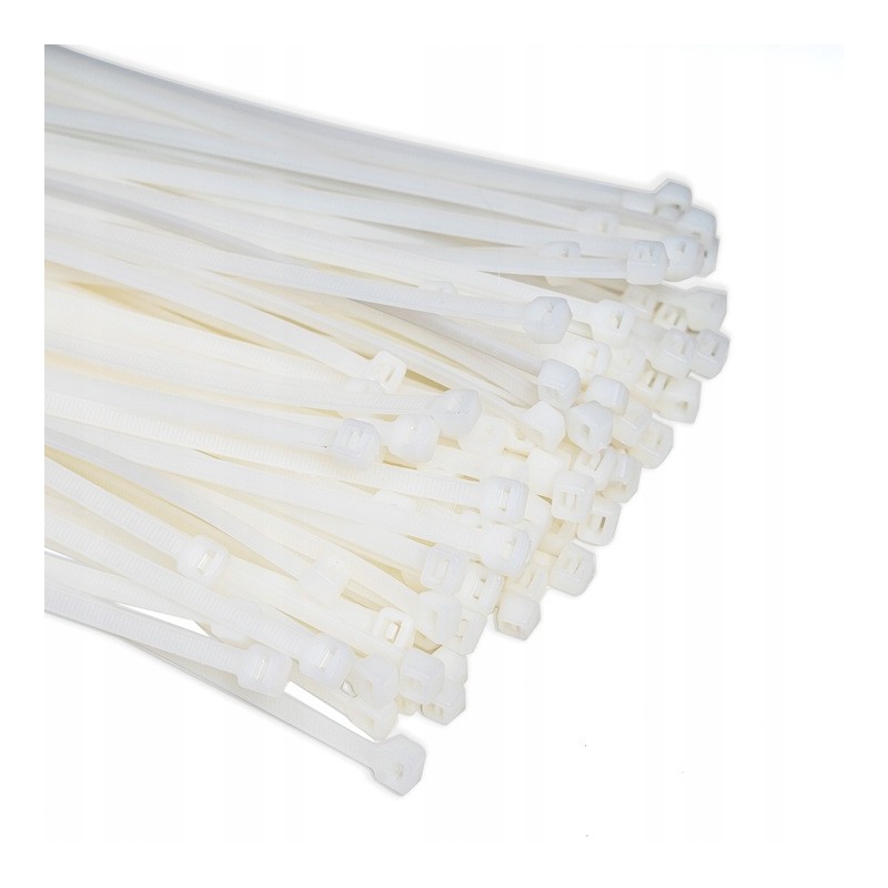 OPASKI ZACISKOWE KABLOWE do kabli TRYTYTKI białe mocne 7,6 x 250 mm 100 szt