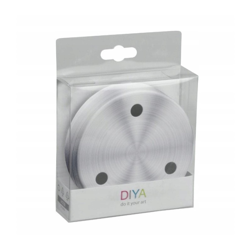 Podsufitka metalowa do montażu natynkowego sufitowego. Zakrywa miesjce połączenia kabla elektrycznego lampy widzącej z siecia elektryczną. Podsufitka pojedyncza do podłączenia 1 kabla. Akcesoria montażowe w zestawie. Kolor stal szczotkowana.
