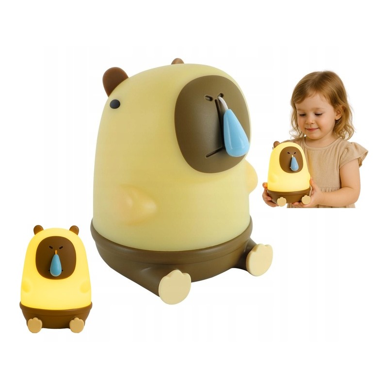 Lampka Nocna Kapibara Dla Dzieci Sylikonowa Miękka Bezprzewodowa USB
