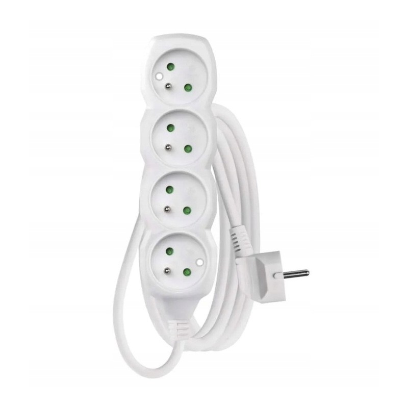 Przedłużacz Listwa Zasilająca Sieciowa z Uziemieniem 4 Gniazda 3m Biały