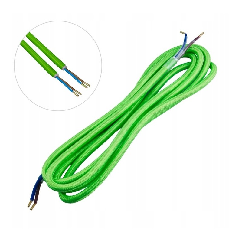 Kabel Przewód Elektryczny w Oplocie Kabel do Lampy limonka 2 x 0,75 3m