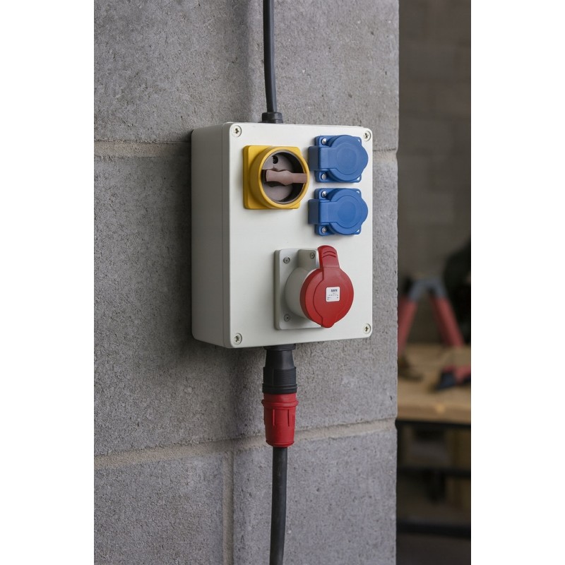 Rozdzielnia przeznaczona do montowania w halach, na budowie oraz warsztatach. Typ gniazda 1x32A 5p 400V.