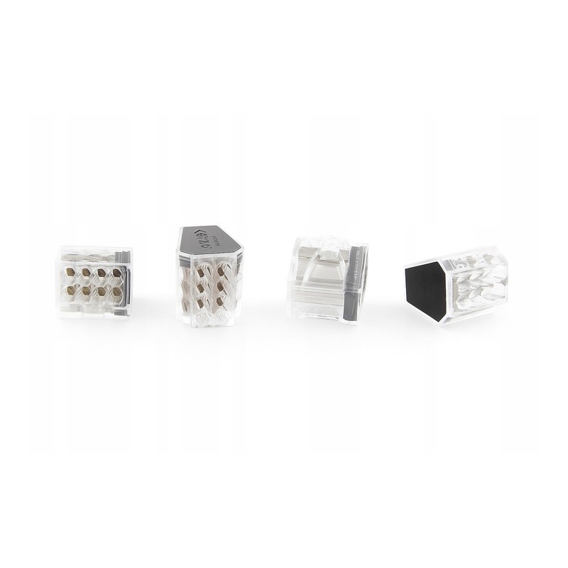 Szybkozłączki instalacyjne pozwalają łączyć dowolne kombinacje przewodów o różnych przekrojach. Przezroczysta obudowa umożliwia wzrokową kontrolę prawidłowego ułożenia przewodów oraz otwór pomiarowy.