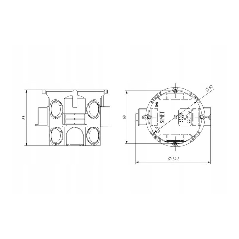 PUSZKA ROZGAŁĘŹNA PŁYTKA PODTYNKOWA Z POKRYWKĄ 80mm Z80KF SIMET 33073008