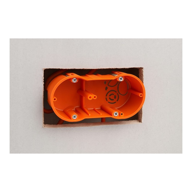 ✴️Wykonana z wytrzymałego polipropylenu w kolorze pomarańczowym, gwarantuje długą żywotność i odporność na uszkodzenia mechaniczne. Specjalne zaczepy z wkrętami pozwalają na łatwy montaż i pewne osadzenie puszki w płycie g-k.