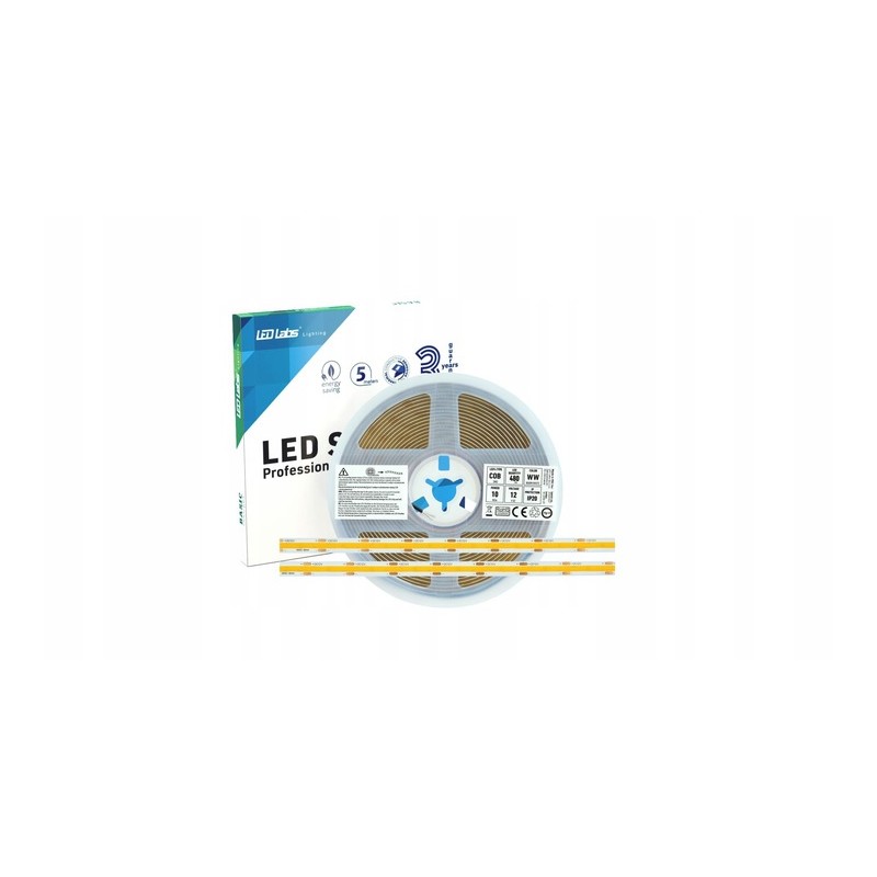 Taśma LED COB 10W/m barwa 3000K ciepła profesjonalna 850l/m 12V krążek 5m