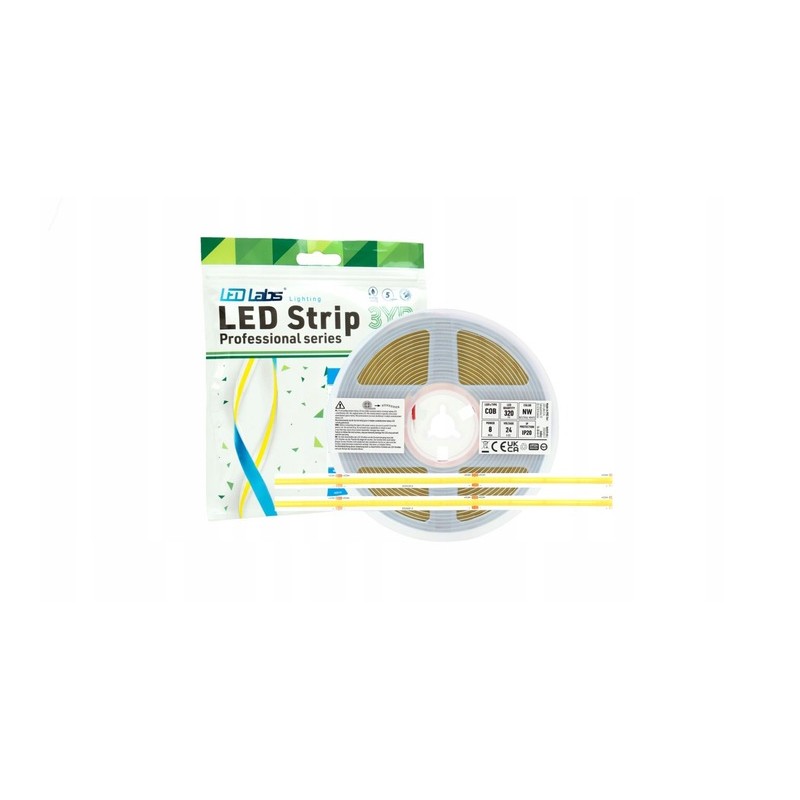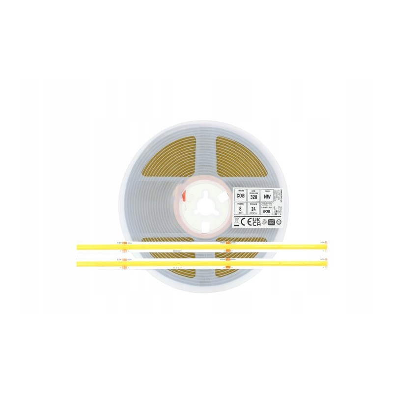 Taśma LED COB 320 24V IP20 4000K Neutralna 5m z pilotem i zasilaczem