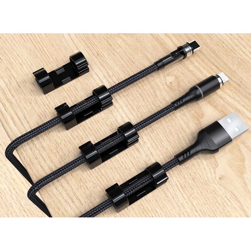 Samoprzylepny wieszak służący jako organizer na maksymalnie 5 kabli. Dedykowanym miejscem montażu jest brzeg biurka lub stołu. Zapobiega splątaniu przewodów ułatwiając ich schludne uporządkowanie.