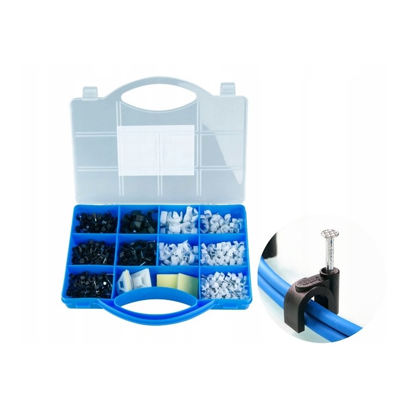 ✅Profesjonalny zestaw uchwytów kablowych z wbitym gwoździem hartowanym to niezastąpione akcesorium dla elektryków, instalatorów oraz majsterkowiczów. Umożliwia szybki, trwały i estetyczny montaż przewodów o przekroju od 4 do 25 mm². Wszystko zapakowane w solidne pudełko PVC z przegródkami, które ułatwia organizację i przechowywanie elementów.