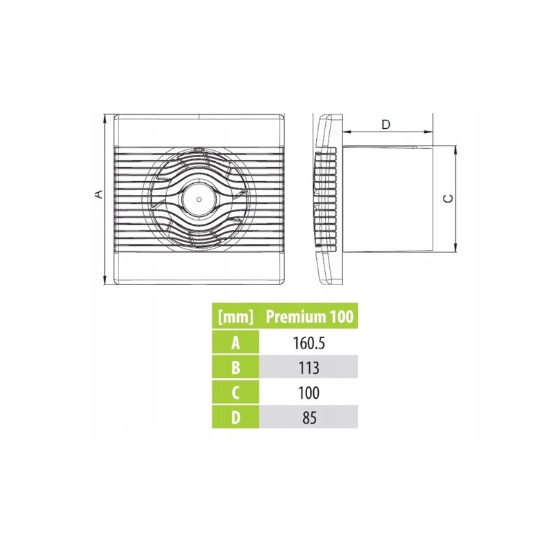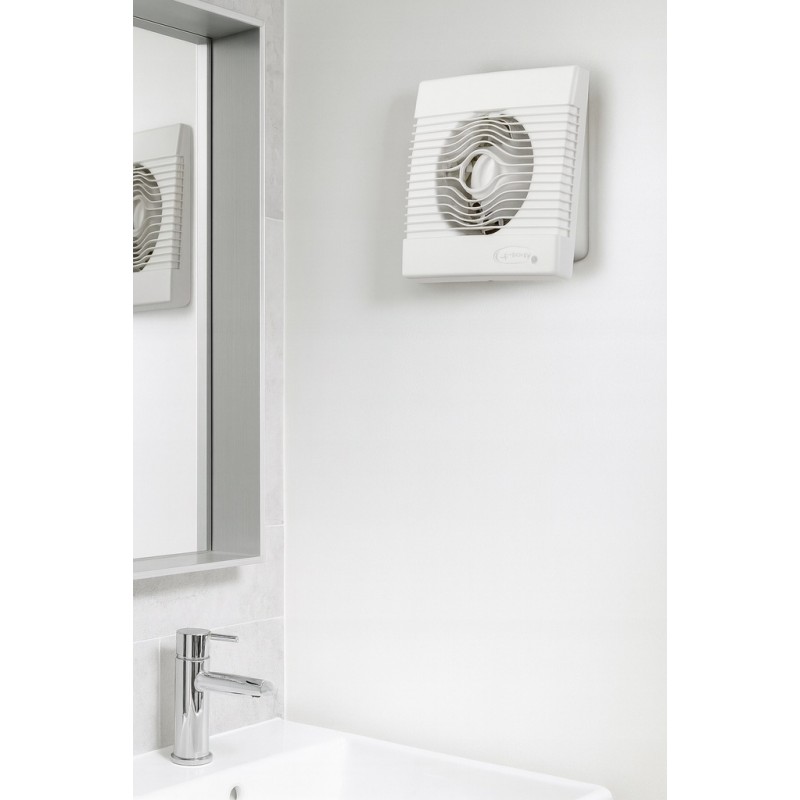 Wentylator wyciągowy z nowoczesnym wzornictwem do zastosowania w pomieszczeniach prysznicowych, łazienkach, kuchniach i innych pomieszczeniach mieszkalnych. Maksymalna wydajność w połączeniu z energooszczędnością.