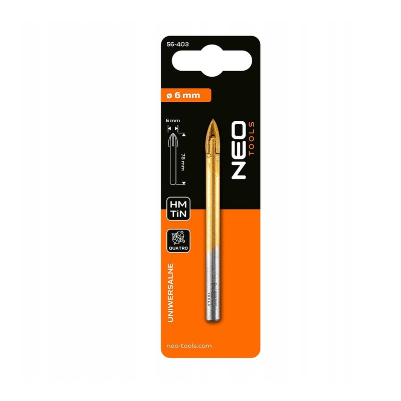 Wiertło uniwersalne do wiercenia bezudarowego HM 6 mm NEO TOOLS