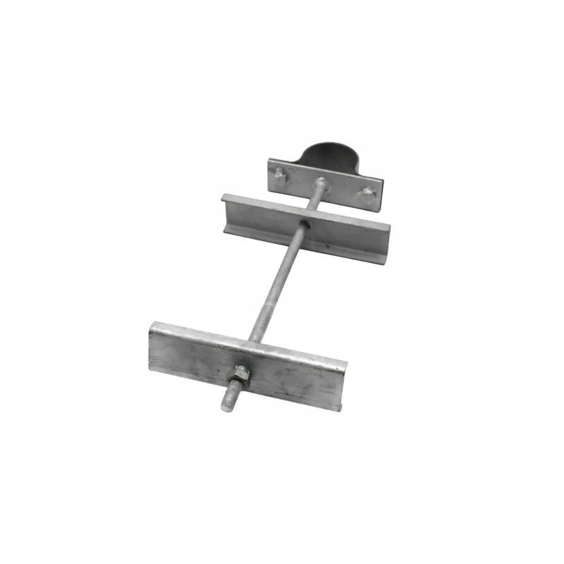 Wykonany z blachy o grubości 2mm. Drut mocowany poprzez zagięcie języka uchwytu. Końcówki obejmy zagięte do uchwytu gąsiora. Całość ocynkowana ogniowo.