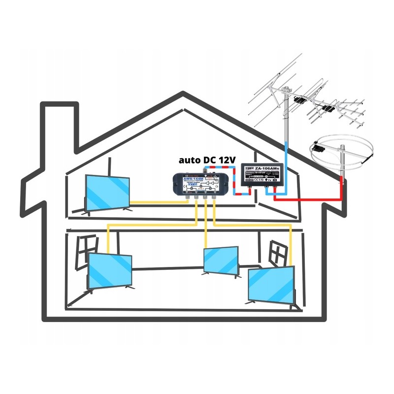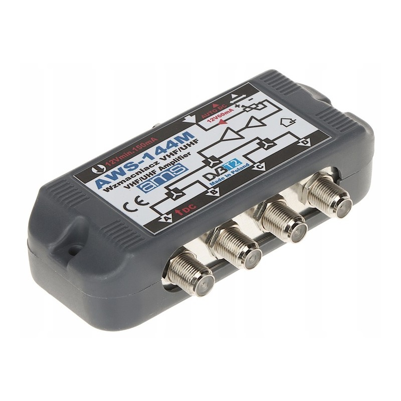 Wzmacniacz antenowy rozgałęźnik DVB-T2 AMS aws-144