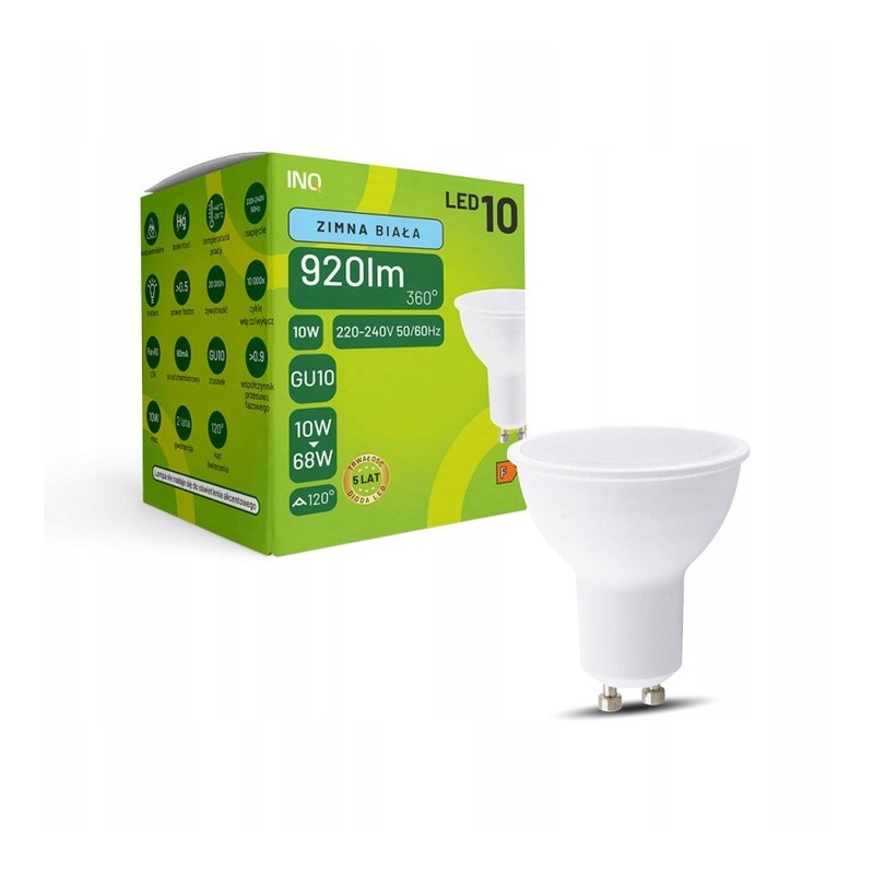 ☑️Żarówka LED MR16 GU10 10W 920lm 6500K INQ – nowoczesne źródło światła