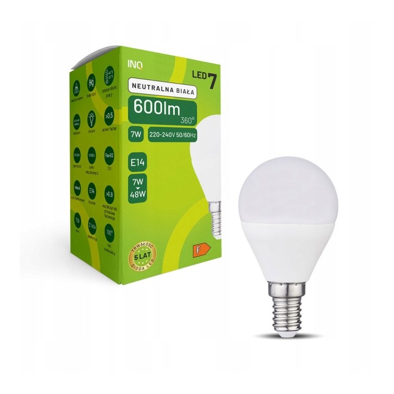 Żarówka LED E14 Lampa LED Kulka 7W Biały Neutralny 600lm
