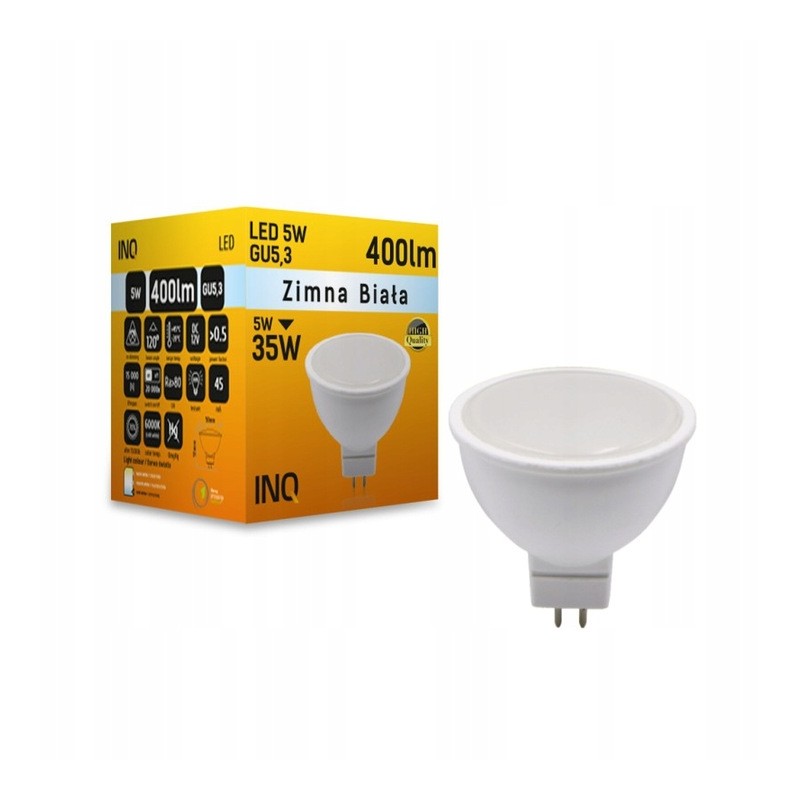 Żarówka lampa LED MR16 GU10 6W 490lm 6500K INQ