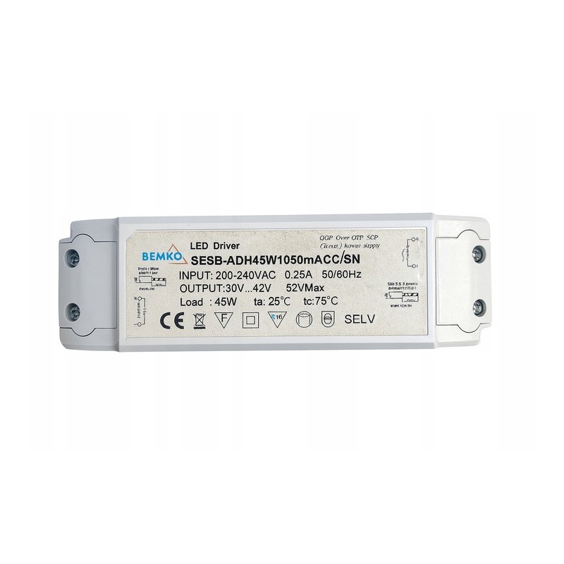 ✴️Zasilacz LED BEMKO SESB-ADH45W1050mACC/SN to wysokiej jakości, bezpieczny i stabilny zasilacz stałoprądowy przeznaczony do zasilania opraw LED wymagających prądu wyjściowego 1050 mA.
