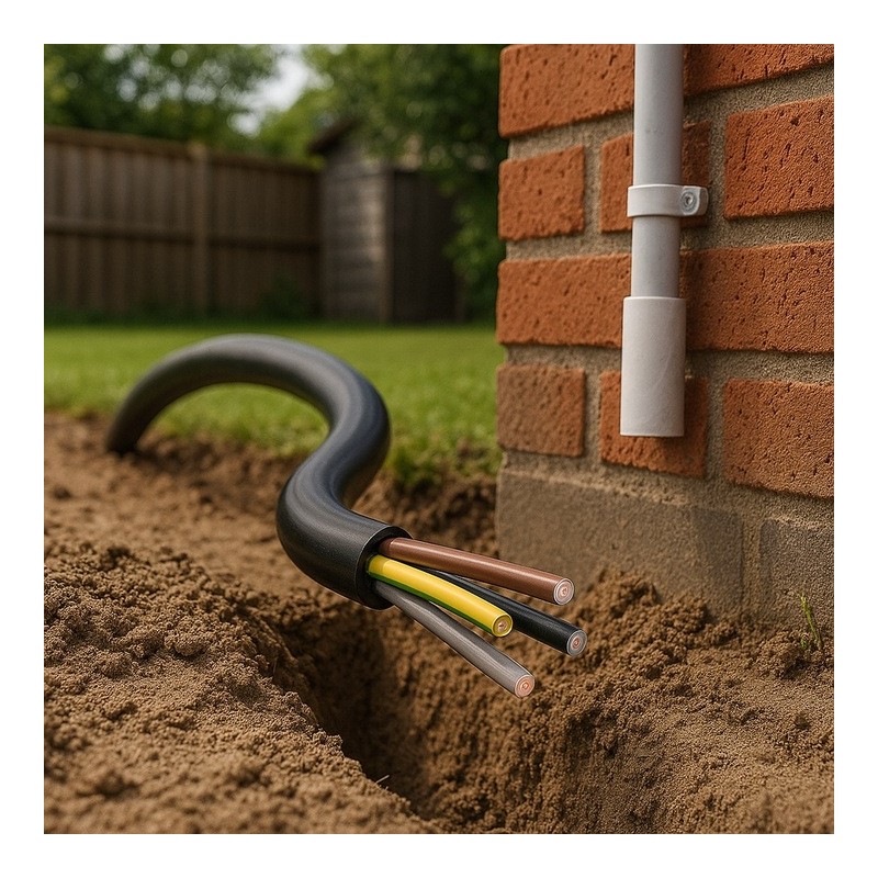 ✴️Układamy je pomiędzy złączem energetycznym wykonanym przez Zakład Energetyczny (zwykle znajdującym się w granicy nieruchomości), a rozdzielnicą główną umieszczoną w budynku.